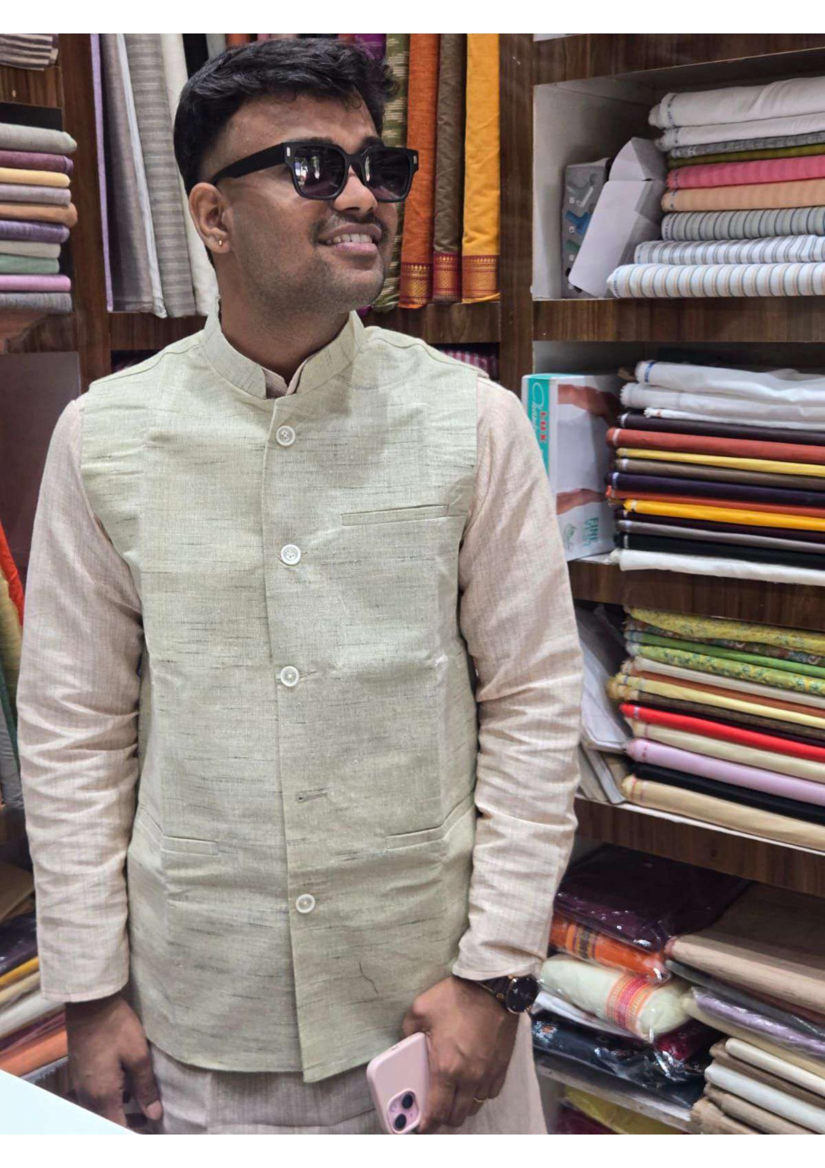 Premium Khadi Nehru Jacket crafted from traditional handwoven fabric for festive and ethnic styling.